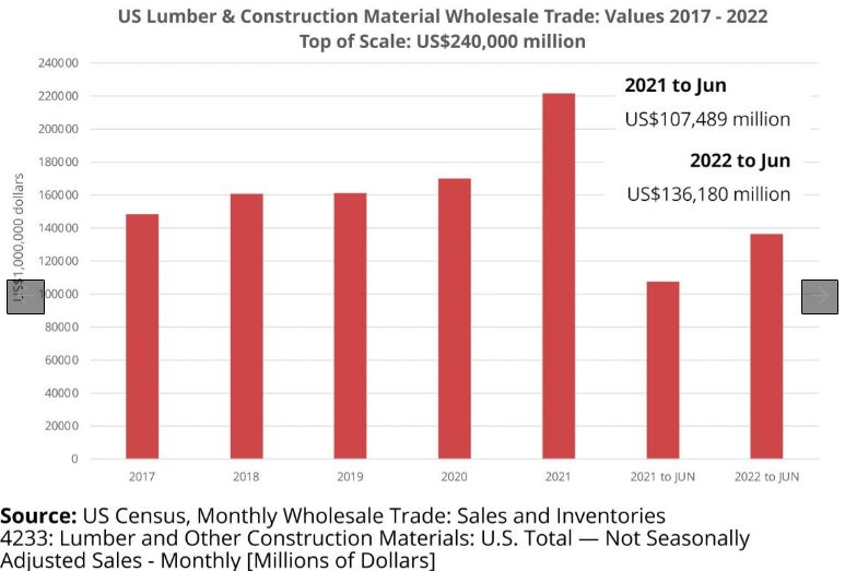 US Lumber & Construction Material Wholesale Trade Values: 2017 - 2022