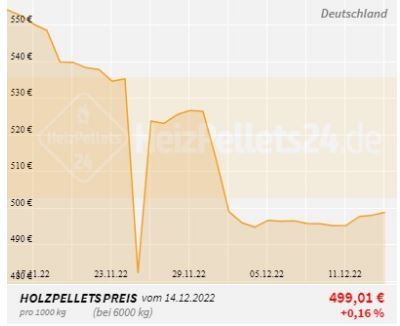 Prices for wood pellets have fallen further in November and have now been following a pronounced sideways trend since the beginning of December, on which they are also expected to say goodbye to the year 2022. On average, 500 euros per tonne are the measure of things. This means that wood pellets in Germany are 43 percent more expensive than at the start of the year, but also 38 percent cheaper than at the record high end of August, beginning of September. In Austria and Switzerland, 525 euros and 525 euros respectively are also falling. 590 francs per tonne of wood pellets. Experience has shown that price quotations move little over the holidays. In the new year the cards will be shuffled again. Where pellet prices will move 2023 is not yet definitively estimated. After the exceptional year 2022, however, a normalization is imminent and the development of wood pellet prices could resume its ideal typical course. Prior to the price capricious 2022, which already started in the autumn 2021, pellet prices showed the same seasonal course for five years. The price started relatively high in the year, followed by a decline with a typical summer low before quotations picked up again in the autumn. Looking ahead to the current year, the numerous customers who have postponed their autumn order have paid off. The price level is significantly more attractive and demand is correspondingly high. At HeizPellets24, a new December record for orders is already in the middle of the month. In addition to price-triggered demand, the increasing popularity of biomass heaters is also noticeable overall. Source: