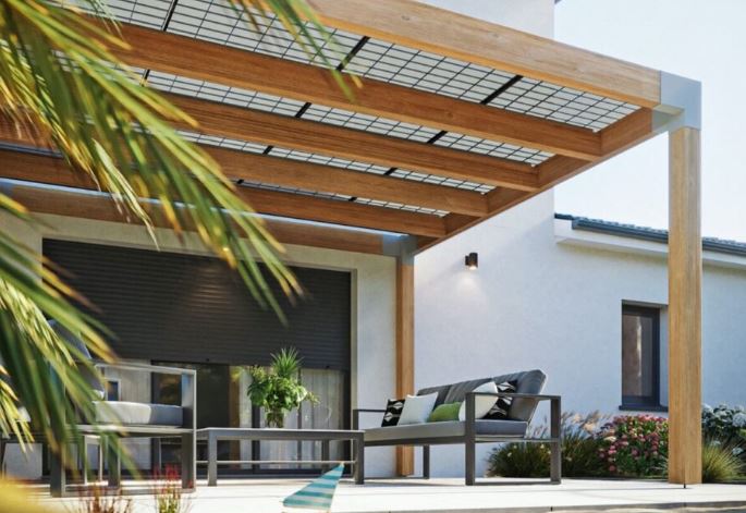 To combine the pleasant with the useful, individuals can choose to install a wooden pergola equipped with solar panels. A unique offer designed by Greenkub.