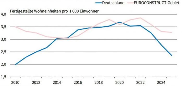 European residential construction is in crisis. This is shown by calculations by the Euroconstruct research group, of which the Ifo Institute is a member. Residential construction in Germany is set to plummet by 2025. For the timber market, this means a collapse in demand and falling prices. General uncertainty "In addition to the abrupt turnaround in interest rates and the jump in costs for construction services, general uncertainty about the medium-term development of real estate prices is leading to pronounced restraint among builders and prospective buyers," says ifo construction expert Ludwig Dorffmeister. Sweden (minus 39%), Denmark (minus 33%) and Hungary (minus 29%) also expect a particularly sharp decline in completed housing between 2023 and 2025. Too little promotion of new construction "Only about one-third of the country experts currently report attractive new construction subsidies," says Dorffmeister. Positive impulses are coming from Ireland (up 17%), Portugal (up 15%), Spain (up 12%) and Slovakia (up 11%). In Germany, orders are expected to plummet by 32% by 2025. According to the ifo economic survey in June, the shortage of orders in German residential construction has worsened. Crash in Germany 34.5% of the companies surveyed report they have too few orders. In May, the figure was 33.9%. This is the highest figure since April 2010, and a new record was set for cancellations of existing orders at 19.2%, compared with 17.8% in May. This does not bode well for the forestry and timber industry. A further decline in demand for wood is to be expected, and with it falling prices, unless valves open up in other markets. Massive declines in softwood log prices are already being reported, especially in bark beetle hotspots. The end of the line is not in sight. กก |