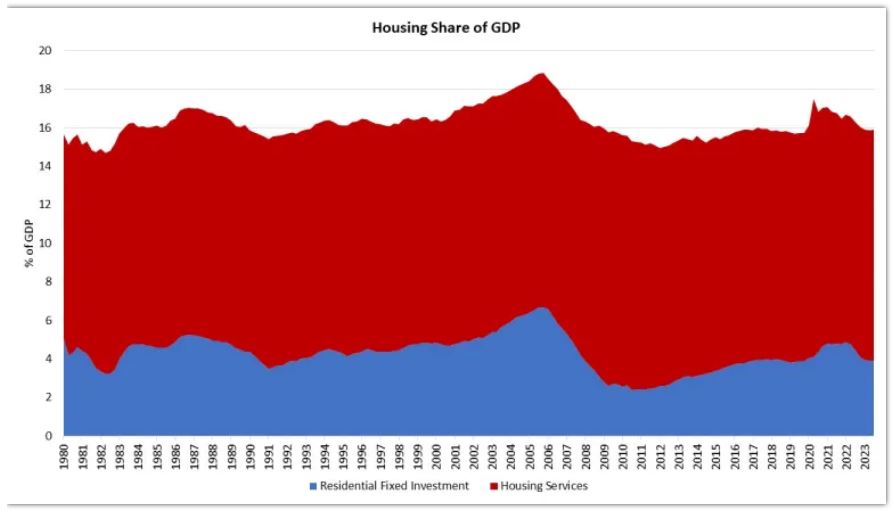 Taken together, housing¡¯s share of GDP was 15.9% for the third quarter.