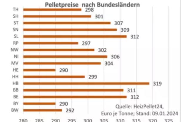 In six federal states, wood pellets cost less than €300 per tonne in the second week of January and in other federal states the €300 mark is not too far away.