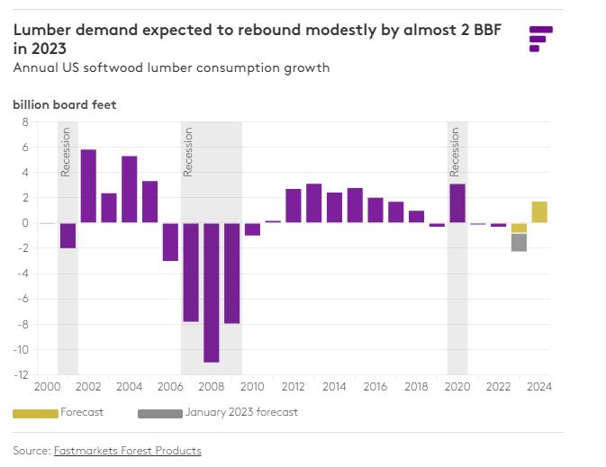 For full transparency, readers will be reminded that our call for lumber consumption last year was for a drop of about 2.2 BBF. We still have several months of industry data to be delivered before we can fully evaluate 2023 demand levels, but compared with our January 2023 forecast, consumption will likely have surprised to the upside by more than 1 BBF. This is largely due to the much more aggressive incentive measures taken by builders that we mentioned earlier, which helped soften the blow in consumption for the year.