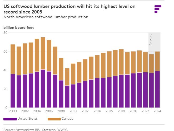 Prediction 6: US softwood lumber production will hit its highest level since 2005
