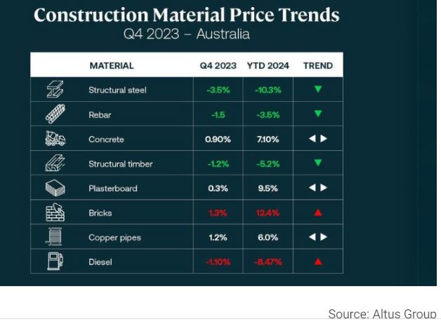 The market may have stabilised, but it will be a tale of mixed fortunes this year for construction with the costs of some key materials forecast to rise. Altus Group has released its Construction Materials forecast for 2024 and energy-intensive manufactured products are expected to chalk up the biggest escalation this year. Conflict in the Red Sea is also having an impact on cost and availability of products imported from Europe according to the report, blurring the crystal ball. ¡°Predicting how 2024 will play out¡ªand what that means for construction costs¡ªis quite challenging,¡± the report said. ¡°In the long-term, however, Australia¡¯s challenges are crystal clear: delivering affordable housing and infrastructure for a growing population; tackling climate change while ensuring a just transition to net zero and keeping the lights on; securing a steady pipeline of talent to underpin the nation¡¯s economy and future. ¡°All of these will require a resilient construction industry able to navigate fluctuating costs and adapt to changing market dynamics.¡± Altus Group¡¯s product cost forecasts for 2024 Structural steel and rebar Steel prices have continued to decline, and have returned to pre-pandemic levels as demand slowed at the tail end of 2023. Altus Group forecasts price stability for 2024, however the long pipeline of infrastructure projects across Australia will underpin steady steel prices into the medium term. Concrete While concrete prices may have been stable in the final quarter of 2023, they rose 7 per cent year-on-year. Australia¡¯s biggest building materials producer, Boral, is bullish about the year ahead, posting a 9 per cent revenue lift and more than doubling its net profit in the half-year to December. Prices for quarried products rose 3 to 9 per cent from the previous half-year. Timber Australia¡¯s sluggish residential construction rates have forced down demand and pricing on structural timber. Altus Group is forecasting a dynamic response in price recovery when construction activity returns, particularly in residential markets, as it is an early-stage construction material. Plasterboard Demand has been sluggish for plasterboard in recent months and consequently the price has remained relatively stable. Altus Group reports a surge in installation costs, particularly in NSW, is driving up the overall cost of the trade. Bricks As a later-stage material bricks have been in demand for the tail end of the home construction cycle. Prices rose during the last quarter of 2023 due to high demand and price increases in energy. Easing of energy prices in 2024 will help reduce the cost of producing bricks. Copper Altus Group reports there is low demand in the near term for copper, which should keep prices stable. The price of copper bottomed out in 2020 during the pandemic. Diesel Escalating tensions in the Middle East have translated into fluctuating global fuel prices. Diesel prices, in particular, will hinge on the unfolding situation in the region. Source: theurbandeveloper.com |