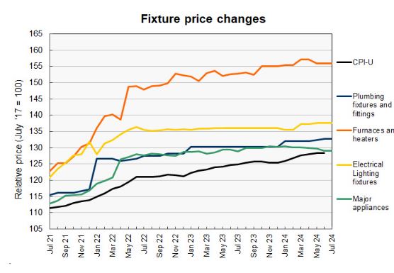 While the price index for major appliances was reported to be effectively unchanged, last month¡¯s price index was revised higher by 1.4 percent. While the price index for electrical lighting fixtures was reported to be effectively unchanged, last month¡¯s price index was revised higher by 1.3 percent. Last month¡¯s price indexes for plumbing fixtures and fittings (+0.22 percent) and furnaces and heaters (+0.11 percent) were also revised higher while their price indexes were reported to be nearly unchanged in July.