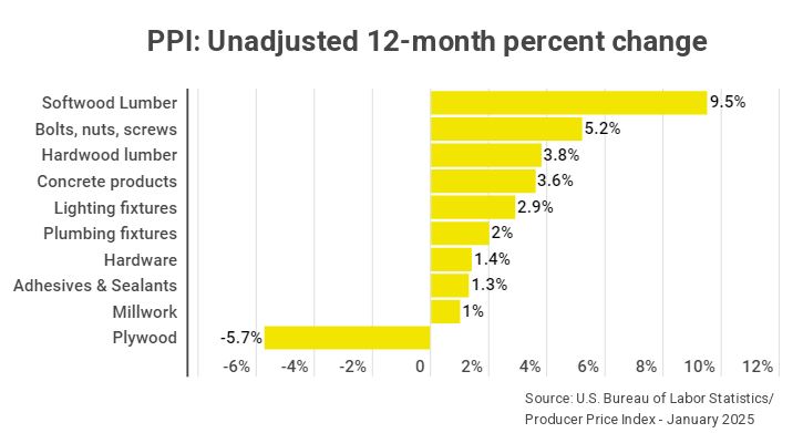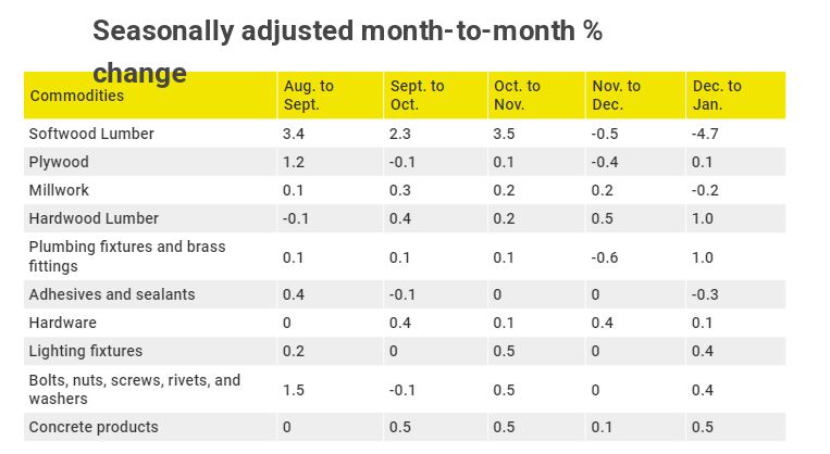 According to the latest data from the U.S. Bureau of Labor Statistic¡¯s Producer Price Index report, the PPI index for plywood dropped 5.7 percent compared to the same month a year ago. But the nine-other key hardware and building supply commodities showed increases from 1% to 9.5%.