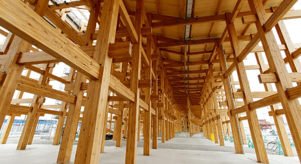 The colossal wooden walkway loop was constructed by Sou Fujimoto