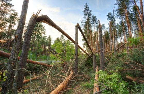 trees have been felled, though salvage is possible depending on