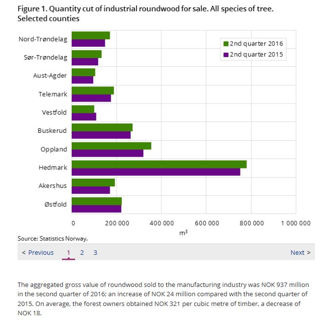 | 1000 cubic metres | NOK per cubic metre | 2nd quarter 2015 - 2nd quarter 2016 | 2nd quarter 2013 - 2nd quarter 2016 | |