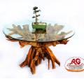 Teak Root Table Glass Top